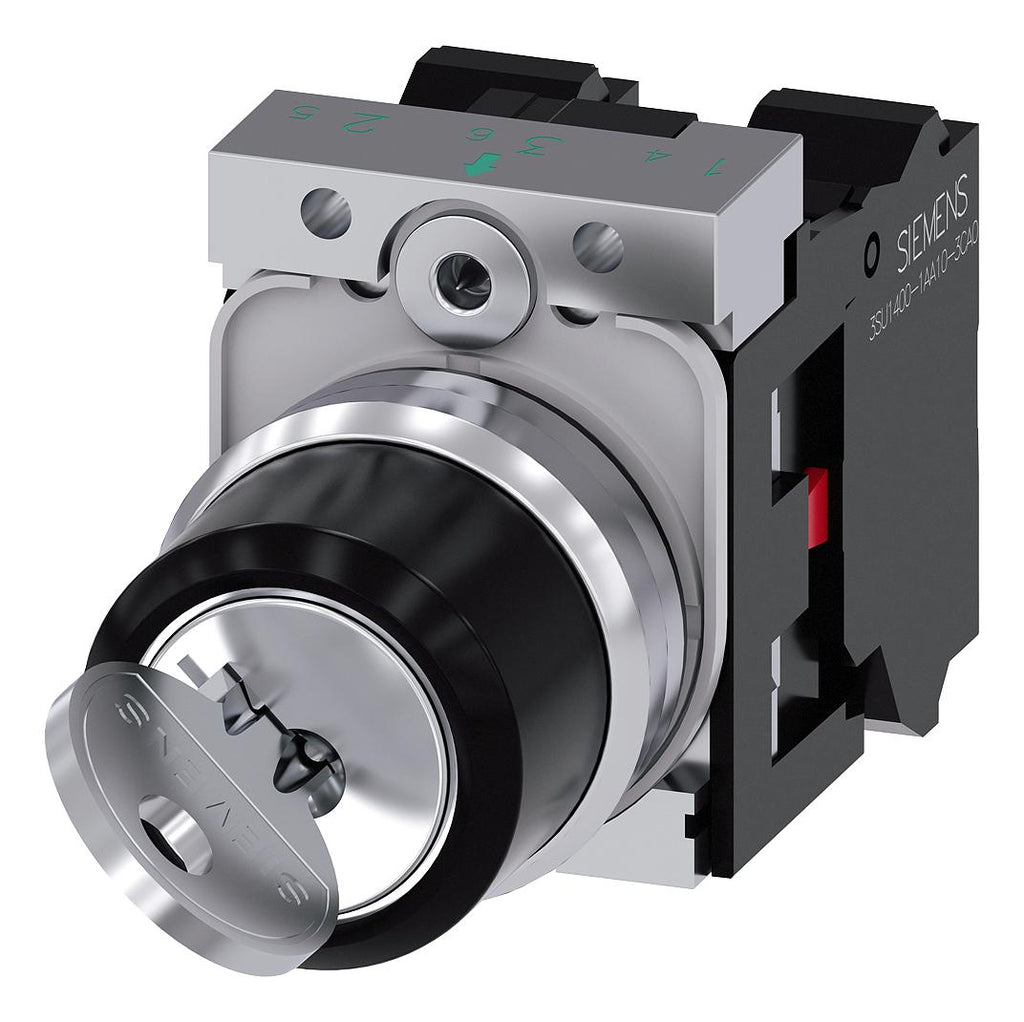 SIEMENS - 3SU1150-4BF01-3PA0 - Key-Operated Switch, 22 mm, 2 Position, SPST-NC, SPST-NC, Spring, SIRIUS ACT 3SU1 Series, 500 V