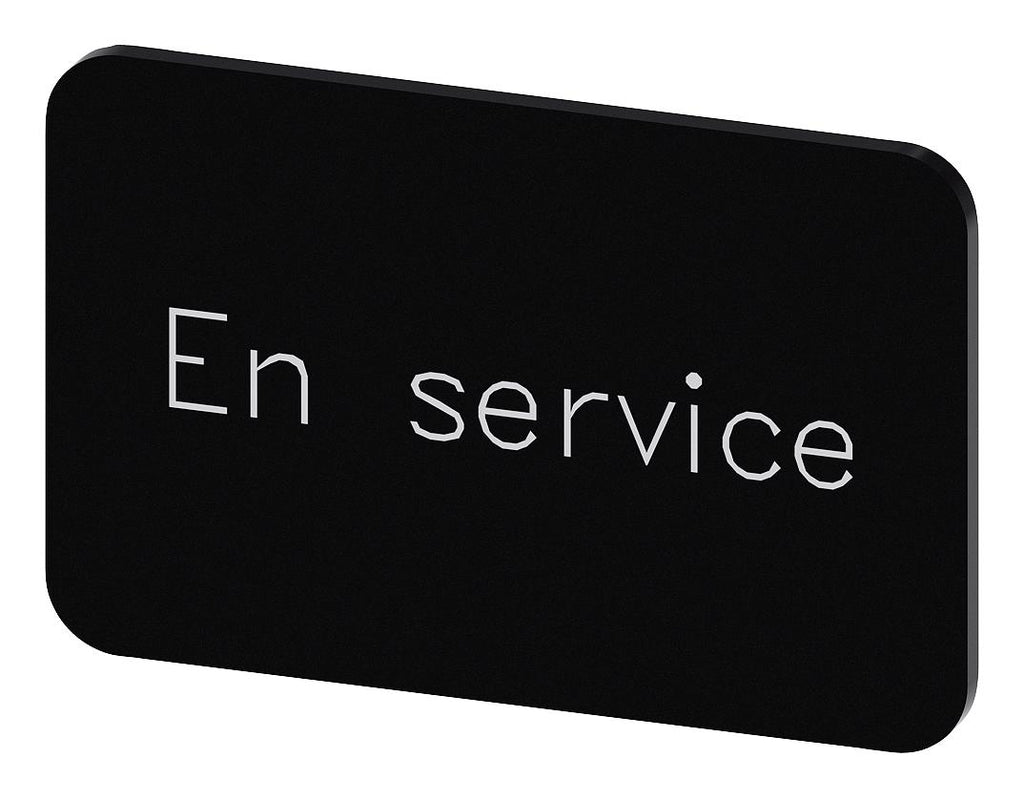 SIEMENS - 3SU1900-0AD16-0GM0 - Labelling Plate, " En Service ", Black Label, White Font, Snap on/Stick, 27 mm W x 17.5 mm H