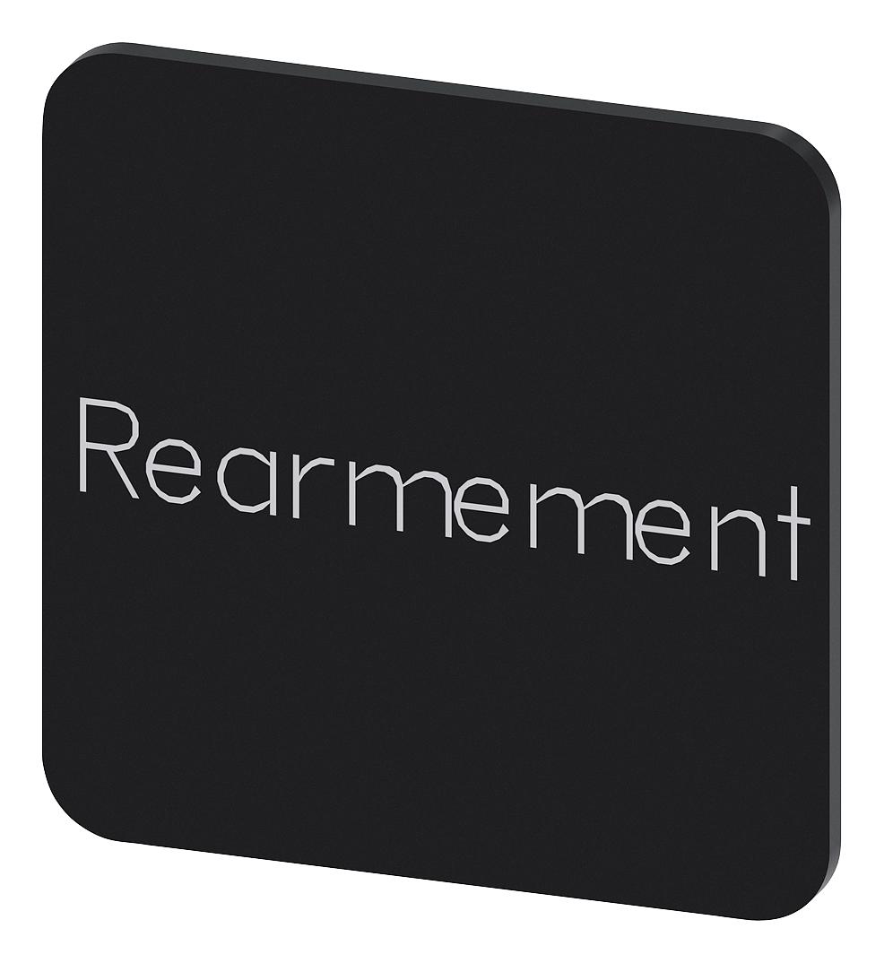 SIEMENS - 3SU1900-0AF16-0GV0 - Labelling Plate, " Rearmement ", Black Label, White Font, Stick, 22 mm W x 22 mm H