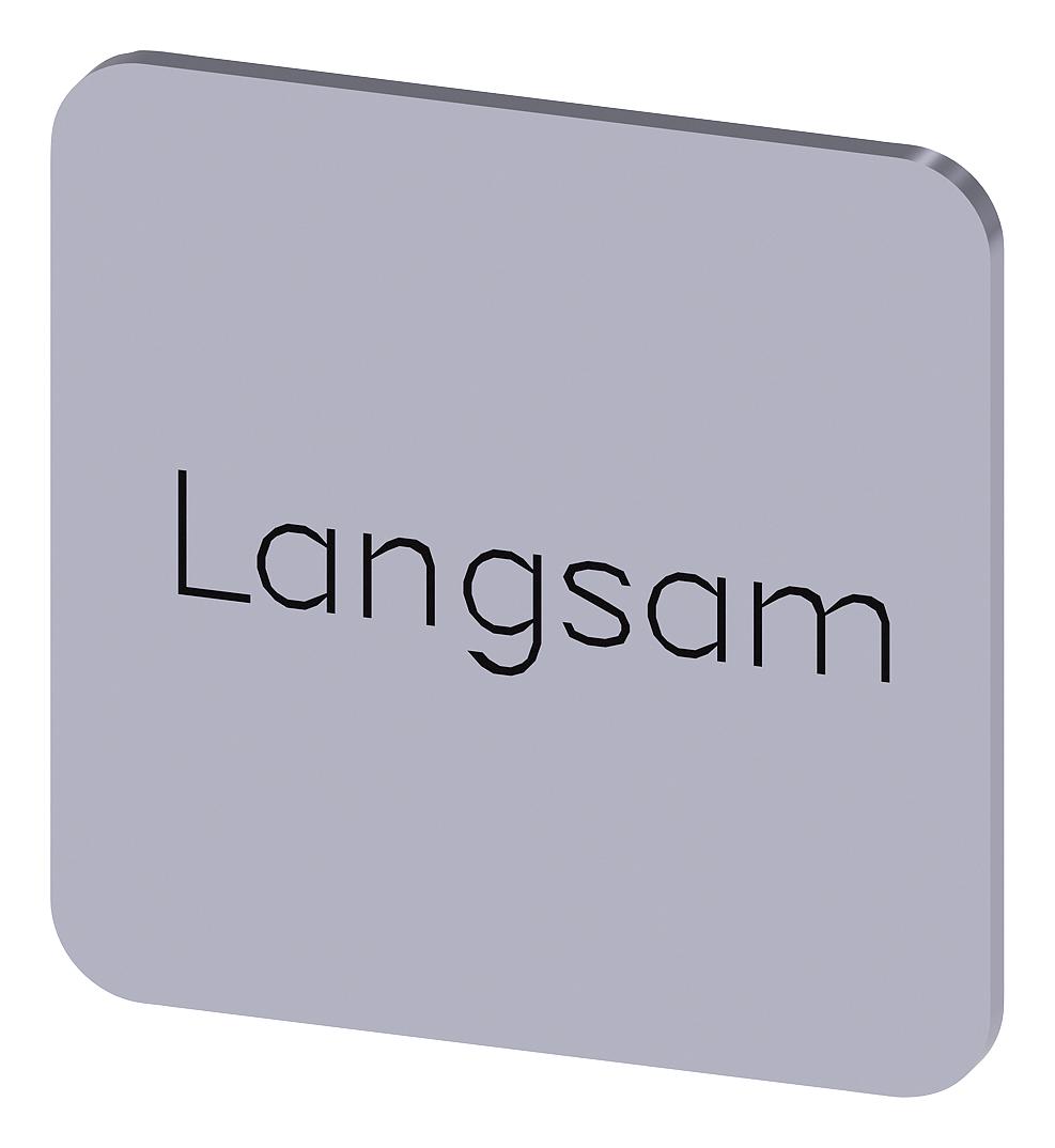 SIEMENS - 3SU1900-0AF81-0AN0 - Labelling Plate, " Langsam ", Silver Label, Black Font, Stick, 22 mm W x 22 mm H