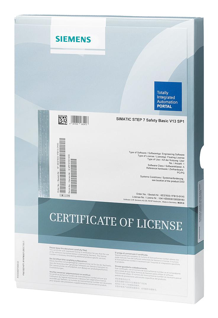 SIEMENS - 6ES7833-1FC02-0YA5 - Software, SIMATIC S7, F-programming Tool, S7 Distributed Safety V5.4, Floating License, 1 User