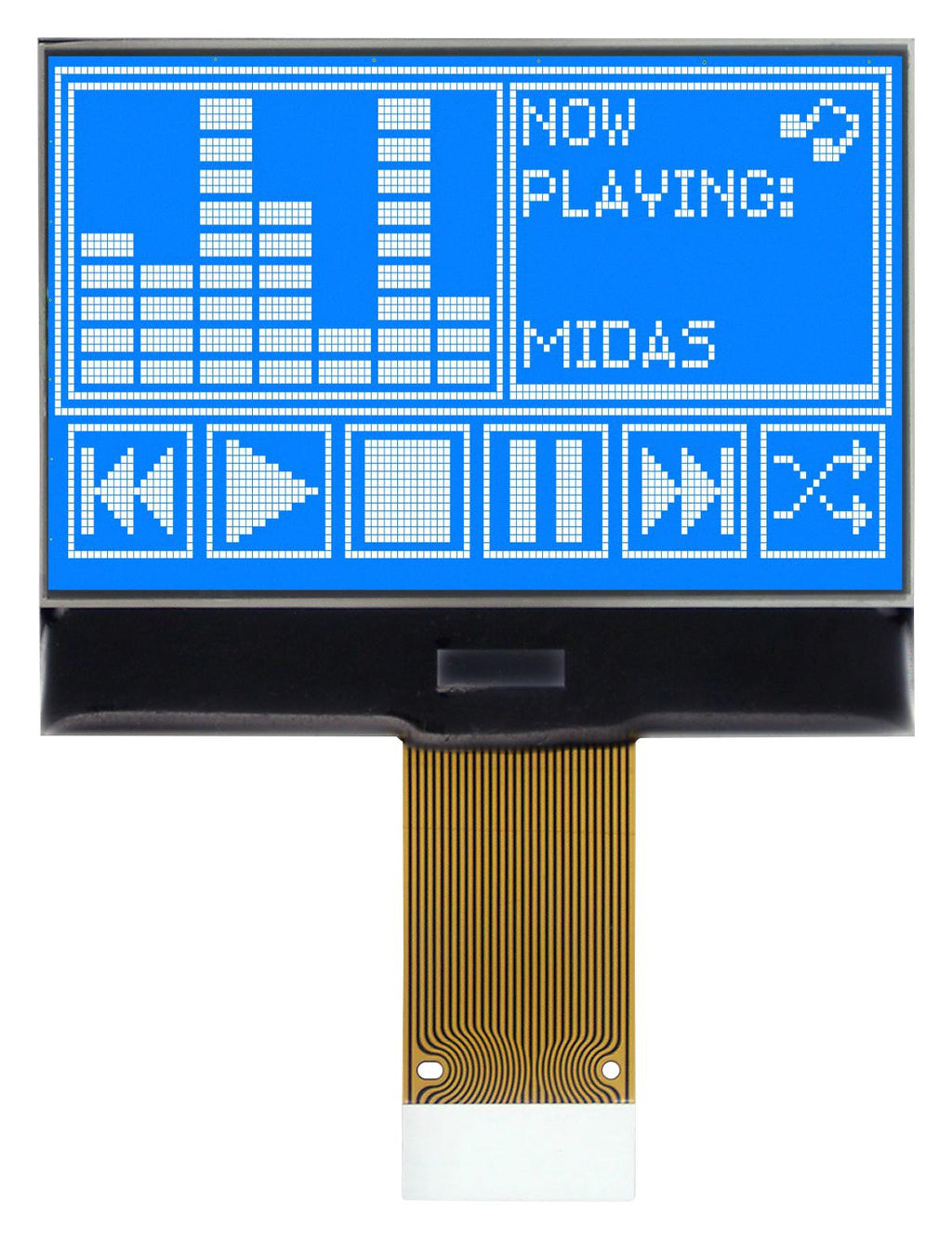 MIDAS - MCCOG128064B12W-BNMLW - Graphic LCD, 128 x 64 Pixels, White on Blue, 3.3V, Parallel, Serial, English, Japanese, Transmissive