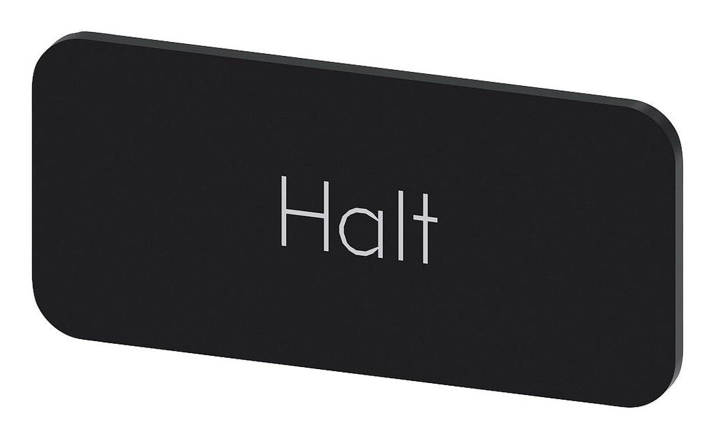 SIEMENS - 3SU1900-0AC16-0AK0 - Labelling Plate, " Halt ", Black Label, White Font, Snap on/Stick, 27 mm W x 12.5 mm H