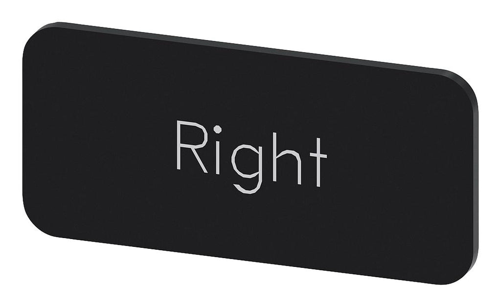 SIEMENS - 3SU1900-0AC16-0DQ0 - Labelling Plate, " Right ", Black Label, White Font, Snap on/Stick, 27 mm W x 12.5 mm H