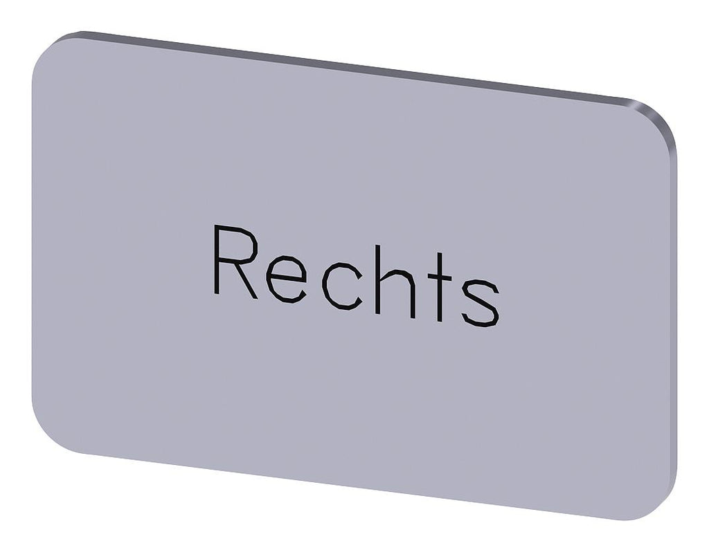 SIEMENS - 3SU1900-0AD81-0AH0 - Labelling Plate, " Rechts ", Silver Label, Black Font, Snap on/Stick, 27 mm W x 17.5 mm H