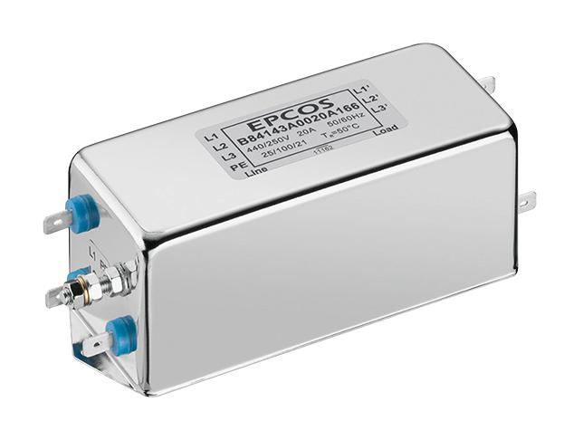 EPCOS - B84143A0020A166 - Power Line Filter, General Purpose, 520 VAC, 20 A, Three Phase, 1 Stage, Chassis Mount