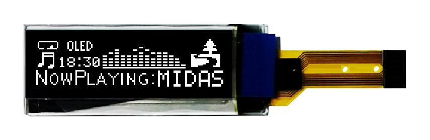 MIDAS - MCOT128032CY-WS - Graphic OLED, 128 x 32 Pixels, White on Black, 2.8V, SPI, 48mm x 11.5mm, -40 °C