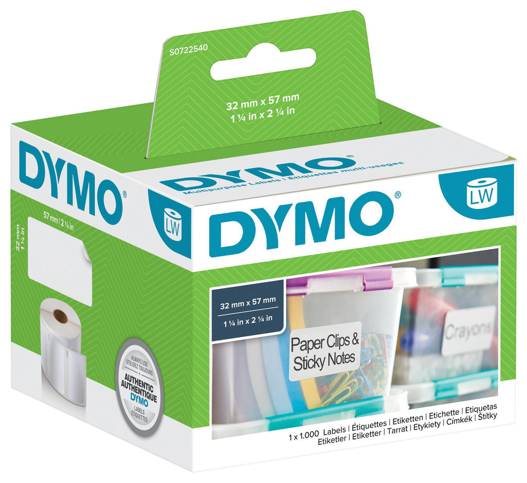 DYMO - 11354 - Label, Multipurpose, 32mm H x 57mm W, Paper, White