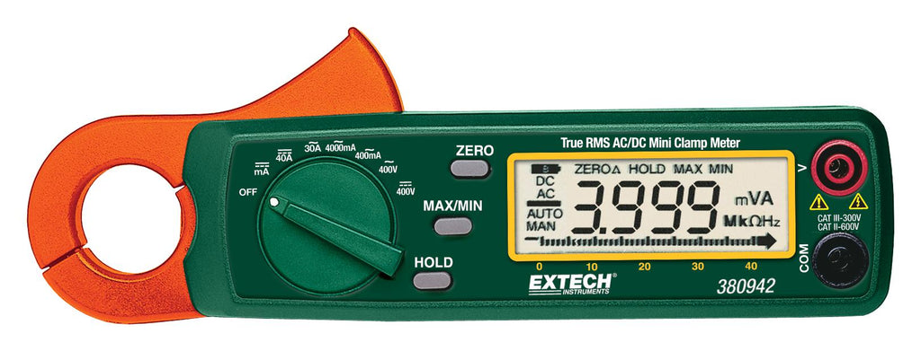 EXTECH INSTRUMENTS - 380942 - Clamp Meter, AC/DC Current, AC/DC Voltage, 30 A, 400 V, 400 V, True RMS