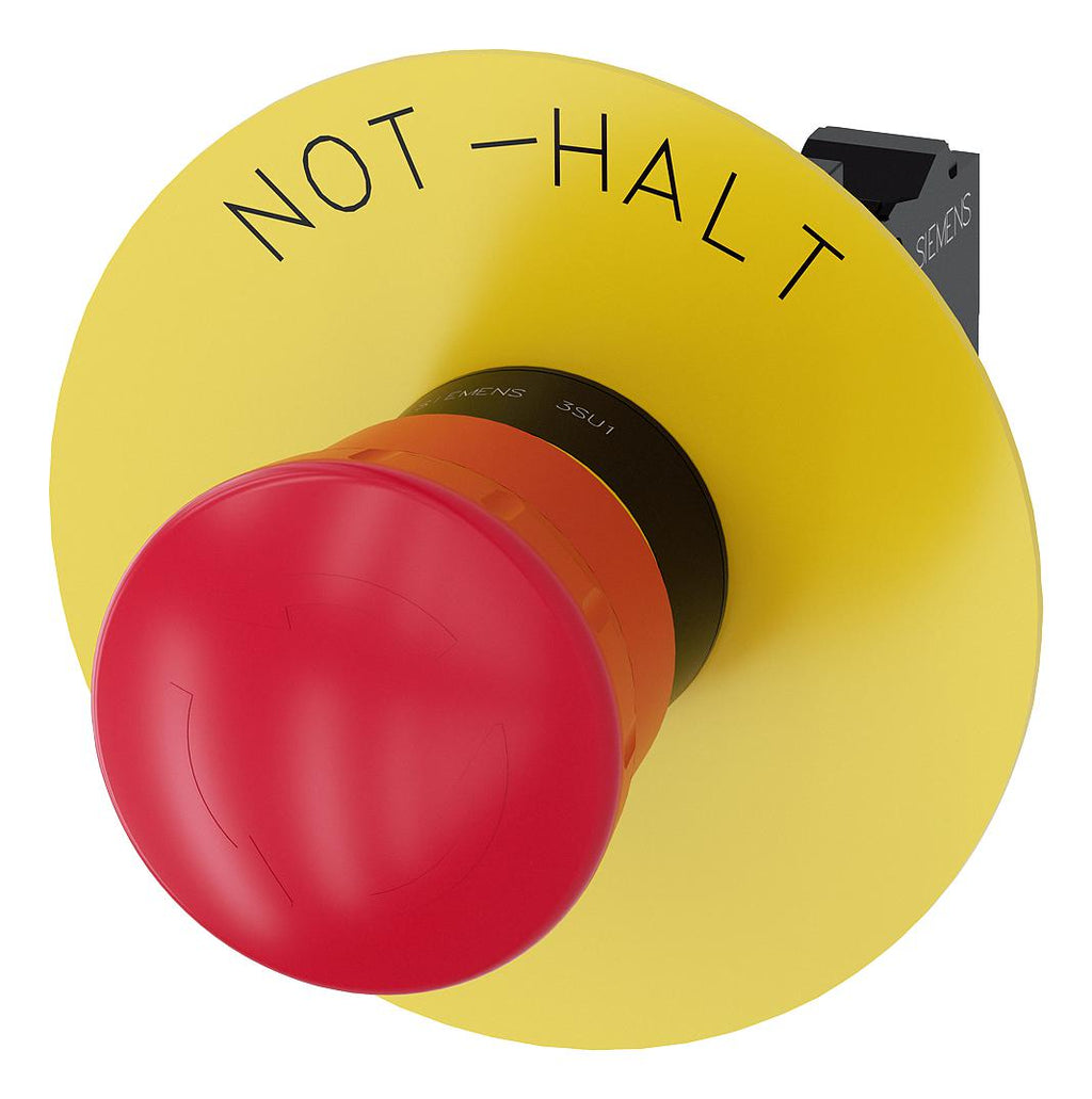 SIEMENS - 3SU1100-1HB20-3CH0 - Emergency Stop Switch, SPST-NC, Spring, 10 A, 500 V, 500 V
