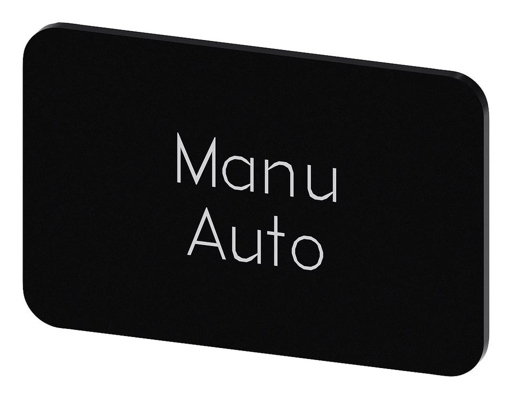 SIEMENS - 3SU1900-0AD16-0GT0 - Labelling Plate, " Manu Auto ", Black Label, White Font, Snap on/Stick, 27 mm W x 17.5 mm H
