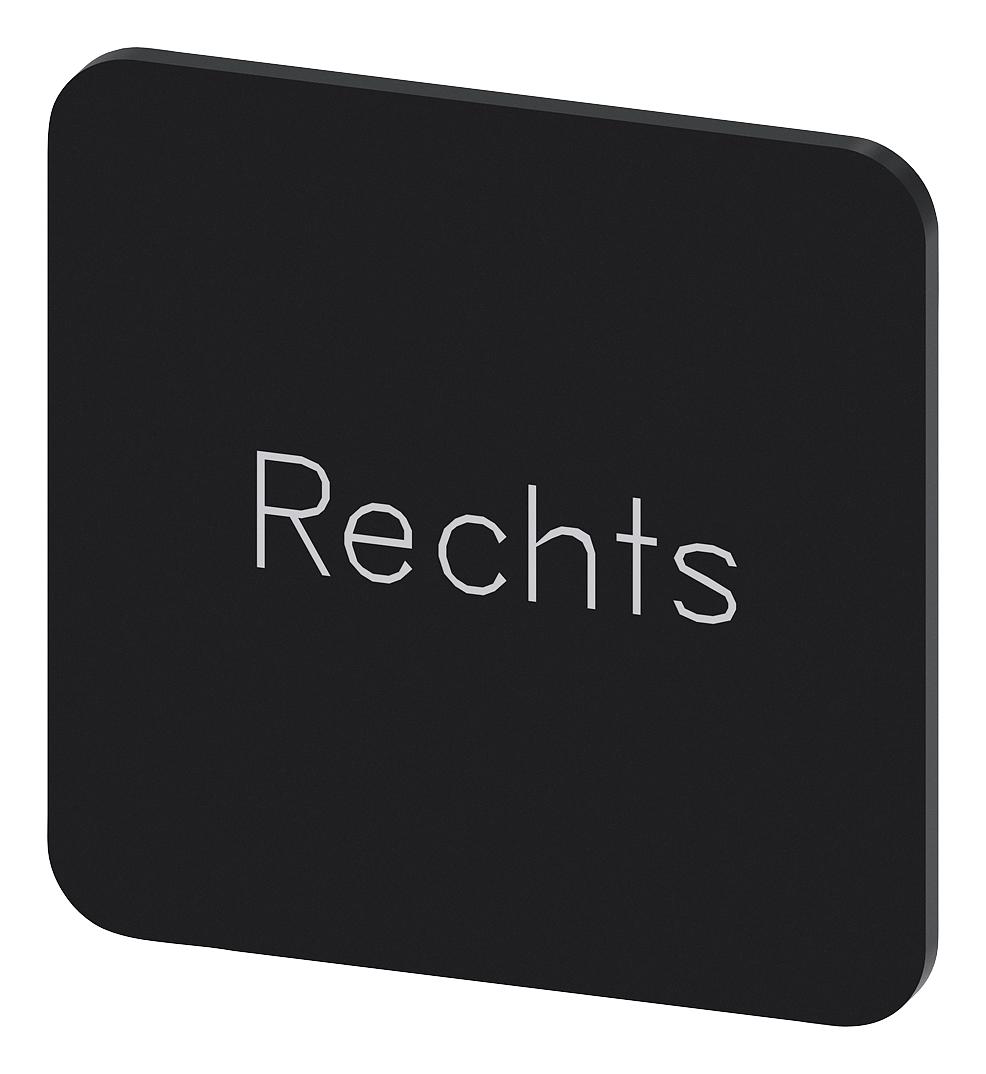 SIEMENS - 3SU1900-0AF16-0AH0 - Labelling Plate, " Rechts ", Black Label, White Font, Stick, 22 mm W x 22 mm H