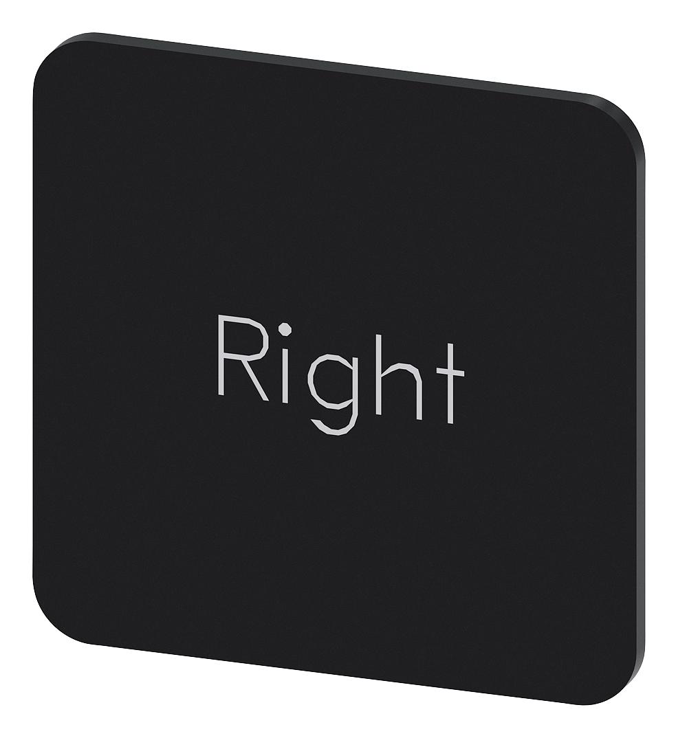 SIEMENS - 3SU1900-0AF16-0DQ0 - Labelling Plate, " Right ", Black Label, White Font, Stick, 22 mm W x 22 mm H
