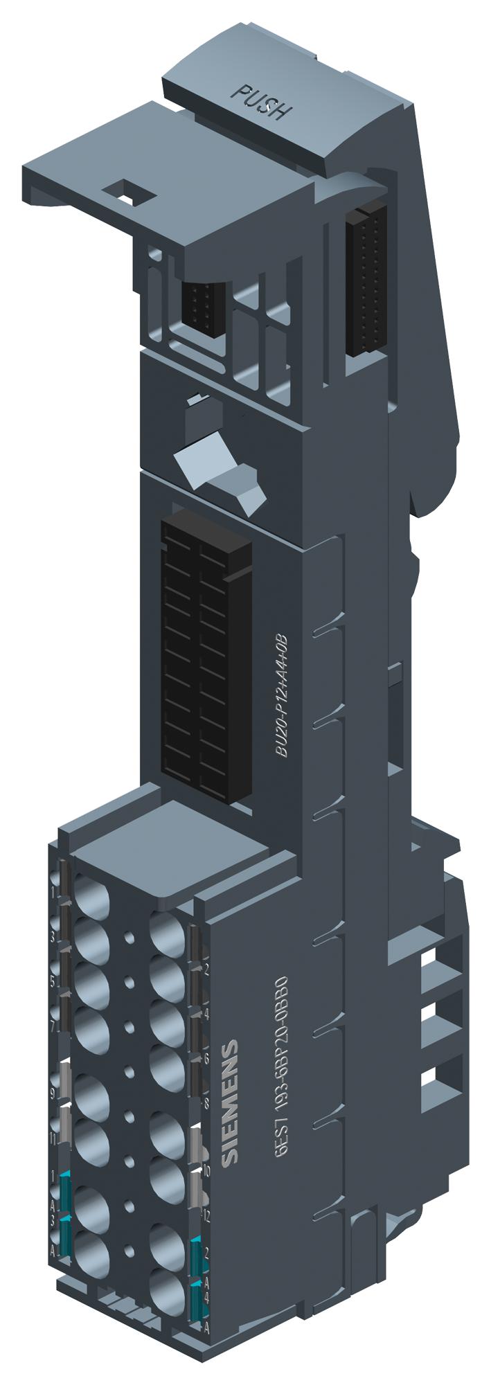SIEMENS - 6ES7193-6BP20-2BB0 - Base Unit, SIMATIC ET 200SP, Type B0, Push-In Terminal, 4 AUX Terminal
