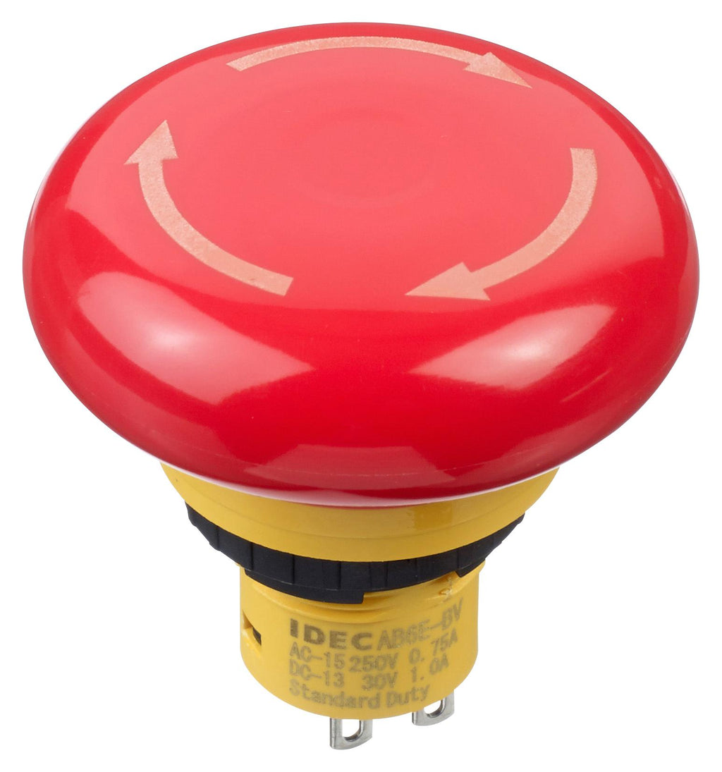 IDEC - AB6E-4BV02PRM - Emergency Stop Switch, DPST-NC, Push-Pull, Quick Connect, Solder, 5 A, 125 V