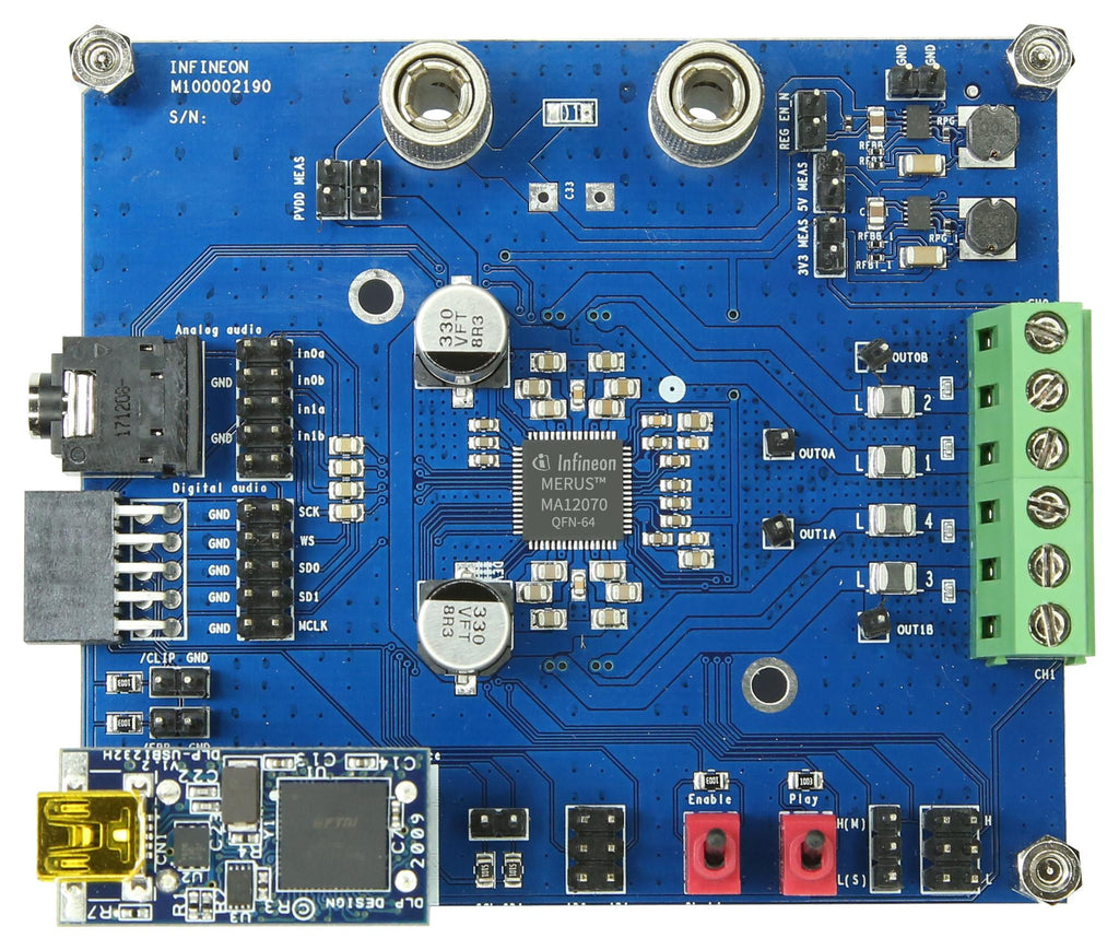 INFINEON - EVALAUDIOMA12070TOBO1 - Evaluation Board, MA12070 MERUS Audio Amplifier, 2-Channel, 80W, Analog Input
