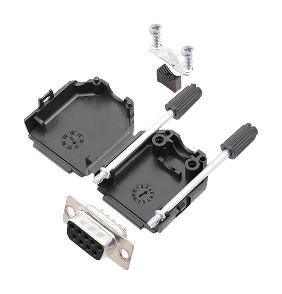 AMPHENOL COMMUNICATIONS SOLUTIONS - L17DPPK09-BK+L77SDE09S - D Sub Connector, With Backshell, DB9, Standard, Receptacle, L17DPPK-BK, 9 Contacts, DE, Solder Cup