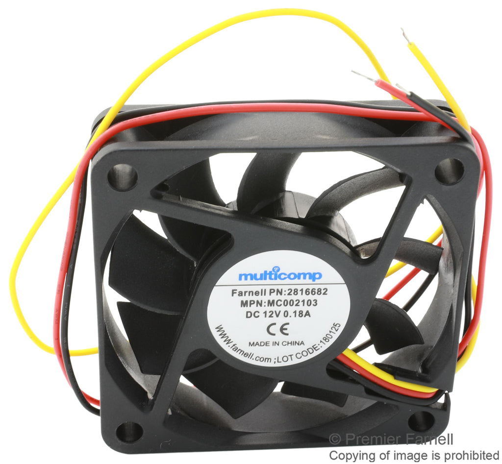 MULTICOMP PRO - MC002103 - DC Axial Fan, 12 V, Square, 60 mm, 15 mm, Hydro Wave Bearing, 18.6 CFM