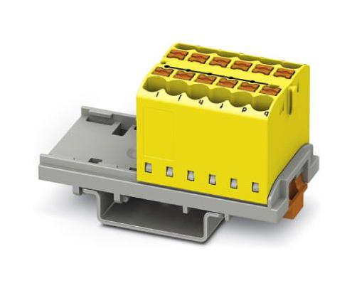PHOENIX CONTACT - PTFIX 12X2,5-NS35 YE - Panel Mount Barrier Terminal Block, Yel/Blk, NS35, 24 A, 690 V, 12 Pole, Push In, 12 AWG