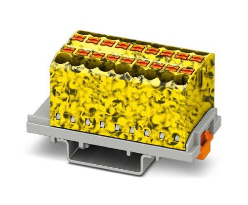 PHOENIX CONTACT - PTFIX 18X2,5-NS35-FE - Panel Mount Barrier Terminal Block, Yel/Blk, NS35, 24 A, 690 V, 18 Pole, Push In, 12 AWG