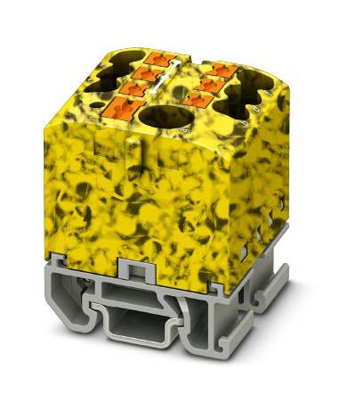 PHOENIX CONTACT - PTFIX 6/6X2,5-NS15A-FE - Panel Mount Barrier Terminal Block, Black/Yellow, 24 A, 690 V, 7 Pole, Push In, 12 AWG