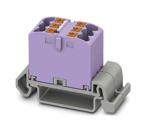 PHOENIX CONTACT - PTFIX 6X2,5-NS35A VT - Panel Mount Barrier Terminal Block, Violet, 24 A, 690 V, 6 Pole, Push In, 12 AWG