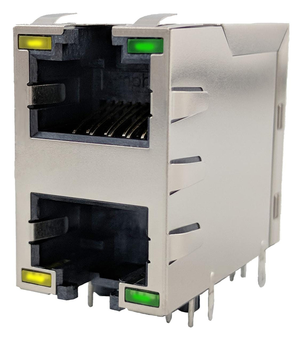 AMPHENOL COMMUNICATIONS SOLUTIONS - RJE1R288325413 - Modular Connector, RJ45 Jack, 2 x 1 (Stacked), 8P8C, Cat5e, Cat6, Through Hole Mount